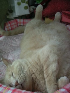 うちのくう_凄い寝相だこと、ひねりを入れて寝ています。